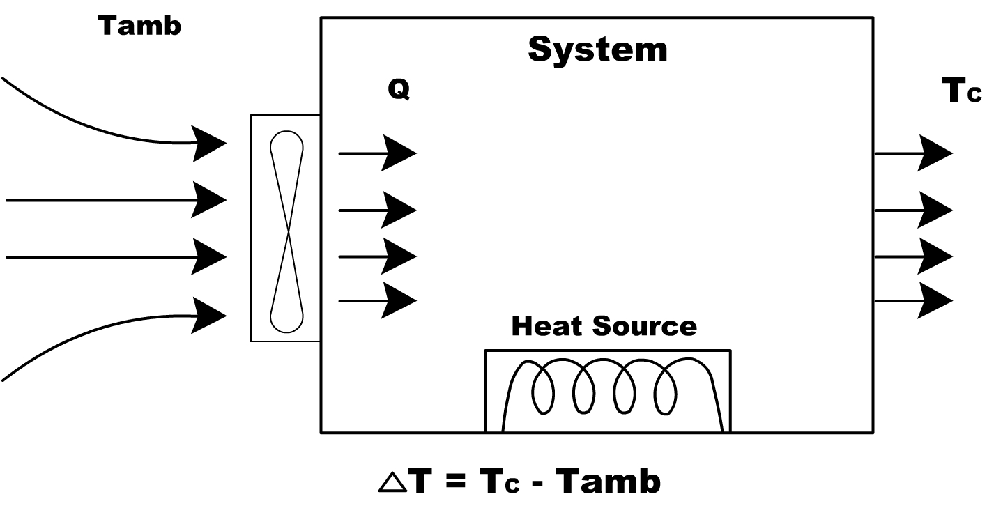 在選用風(fēng)扇之前,首先對系統(tǒng)的散熱風(fēng)量預(yù)估,利用熱力學(xué)原理分析系統(tǒng)的散熱,得到如下公式: